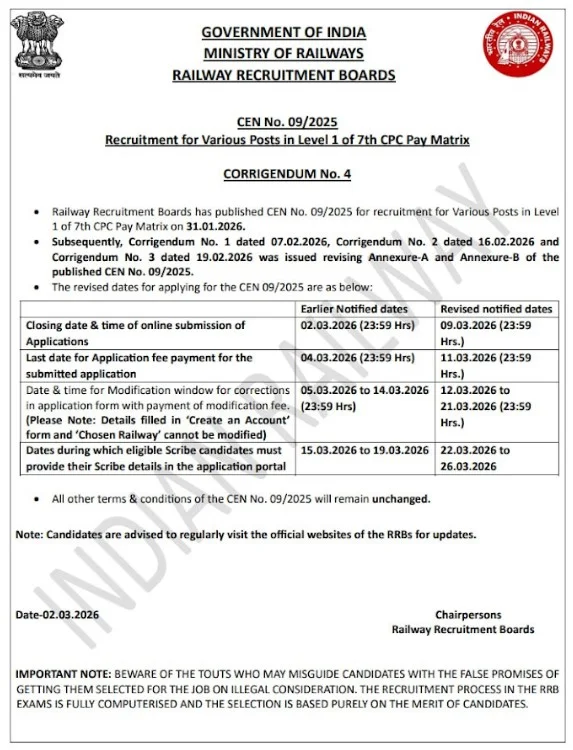 RRB Group D Recruitment 2026: – New Apply Date Out उन सभी युवाओं के लिए एक शानदार अवसर है जो रेलवे में सरकारी नौकरी पाने का सपना देख रहे हैं। आवेदन तिथि बढ़ने से अभ्यर्थियों को तैयारी का अतिरिक्त समय मिल गया है। अगर आप 10वीं पास हैं और रेलवे में स्थायी नौकरी चाहते हैं, तो यह भर्ती आपके लिए बेहद महत्वपूर्ण है।